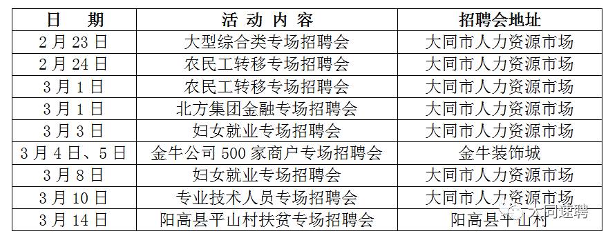 大同市2017年“春風(fēng)行動(dòng)”系列活動(dòng)-招聘會(huì)時(shí)間安排